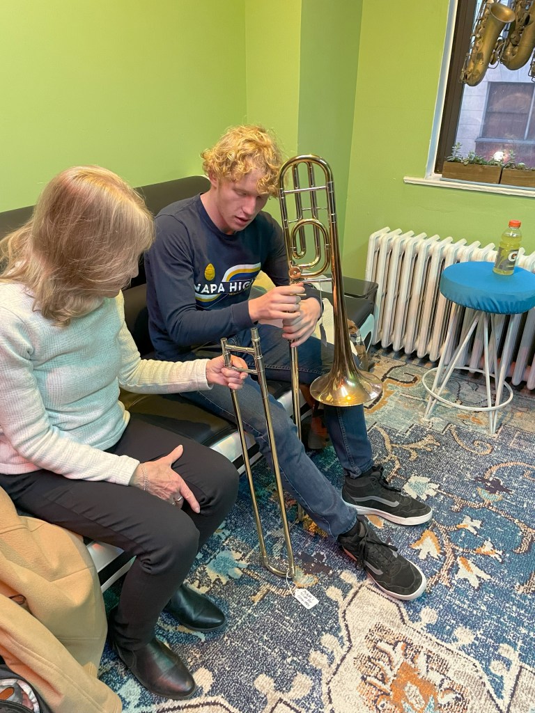 I started playing trombone in elementary school and while I also play guitar and drums, trombone is my favorite. I got my current trombone from a small shop in midtown Manhattan that we frequently visit when we are in New York (which is also where the photo below was taken).